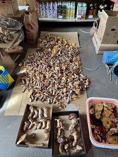 途中のお店で見た、すごいキノコ。ぶっとい松茸もありました。
