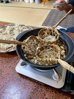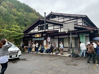 次に行ったのは「ながわ山彩館」(ふるさと奈川観光交流部)。開店待ちでだらだらしていたら、地元情報が。「仙洛でとうじそばを食べろ!行列必至。もう食べられないかも。」えーっ!急いで行きましょう。すでに大行列。