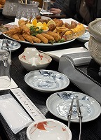 宴会(総会)のお料理は、ここ3年最低グレードの重箱でしたが、今年は気張って「オードブルコース」にしました。ただし、お風呂の時間制限ができていて、宴会開始前の30分急いで入浴。