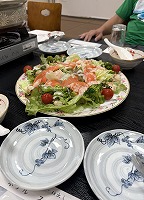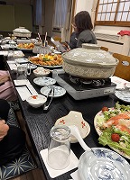 宴会(総会)のお料理は、ここ3年最低グレードの重箱でしたが、今年は気張って「オードブルコース」にしました。ただし、お風呂の時間制限ができていて、宴会開始前の30分急いで入浴。